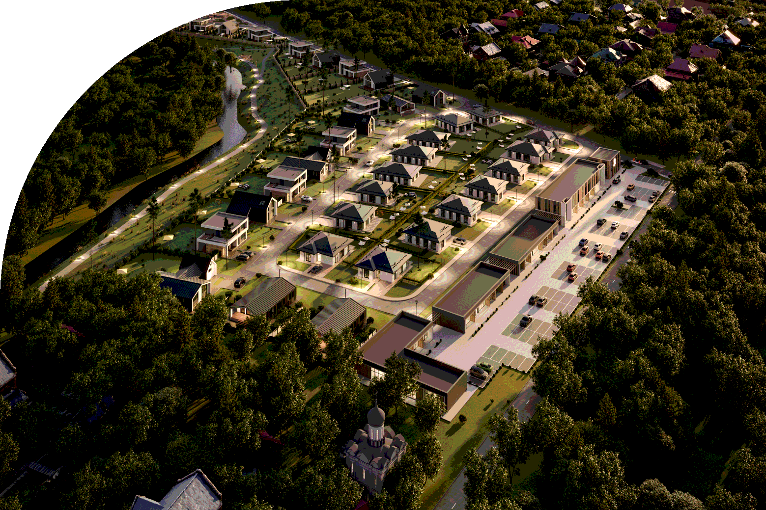 Перед нами стояла непростая задача - объединить два разных видения и сделать это так, чтобы каждый объект архитектуры вписывался в общую концепцию поселка и создавал гармоничное окружение для жизни.